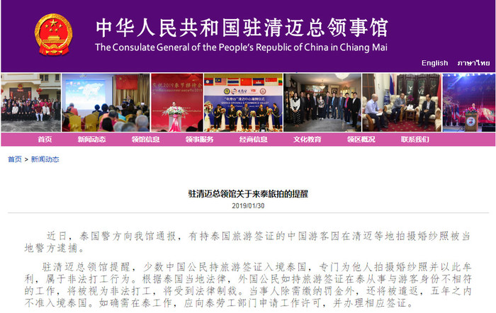 但是清迈移民局官员接受媒体采访称:事情发生在1月3号,而且他们并没有逮捕旅拍的新婚夫妇,而是逮捕了三名非法从事旅拍工作的人员。经过核实,3名持有旅游签证的中国籍公民在泰从事婚纱摄影工作,且有明确的分工(摄影师、化妆师和策划师)和商业交易,曾在清迈多处景点取景拍摄。三人之后会被遣返并可能上黑名单。