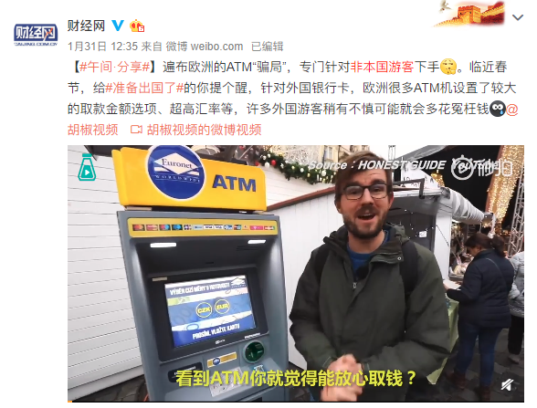 春节假期来到,有没有小伙伴计划去欧洲游的?咳咳,那你们可得小心咯,最近欧洲多地,出现了个新骗局,ATM骗局!财经网官博也专门发文提示