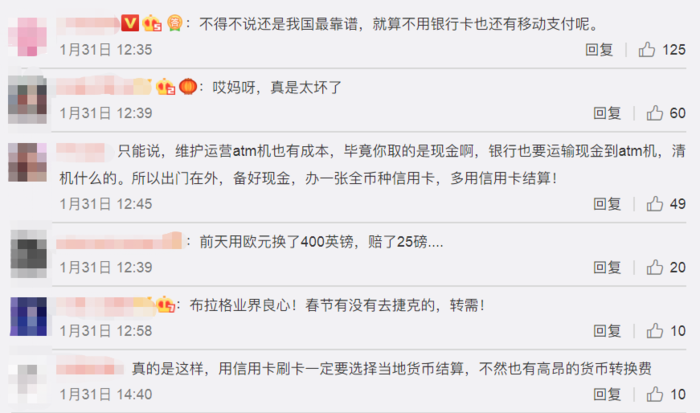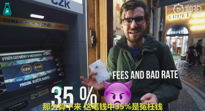 举个例子,用外地卡取一万捷克克朗,会让你亏35%!银联也不例外。这样,就产生了超大数额的差价,最后,再惯例收你个手续费,至此!你的钱,就无声无息地被坑走了....