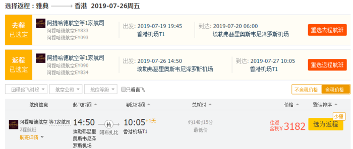 ①香港=雅典,暑假票,特别推荐!含税3K1往返,五星阿提哈德航空执飞,很适合去爱琴海的小伙伴噢~