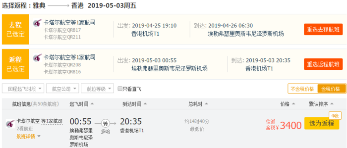 五一、端午等日期也有,不过是五星卡塔尔航空执飞,含税3K4左右往返~