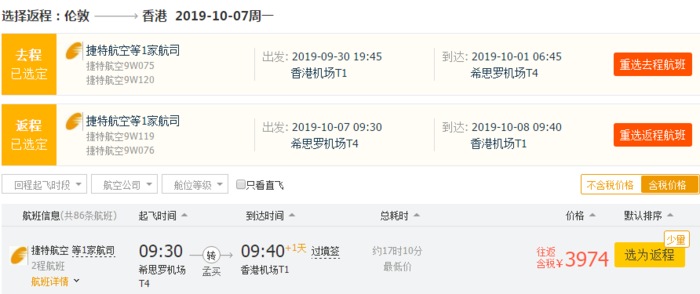 ②香港=伦敦,正国庆票噢!含税3K9往返,捷特航空执飞