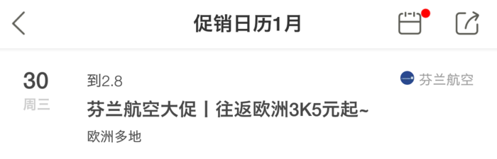 其他城市,比如北京、重庆、南京、上海、西安、广州等地,可以看看芬兰航空目前正在进行的促销,D圈的促销日历就可以看噢~