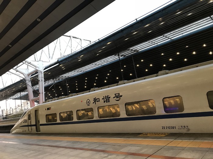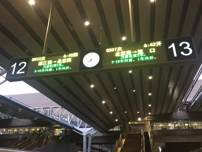 因为机票都是中午出发,到北京已经是下午了,我们不想就这么浪费一天,所以选择晚上坐8小时的高铁第二天6点半到北京西站。洗好澡买点晚餐就往南站赶,一开始我们还以为能在高铁上好好地睡一觉,事实证明是我们太天真了,根本睡不了,它每一个站点都要补燃料,动静都挺大的。