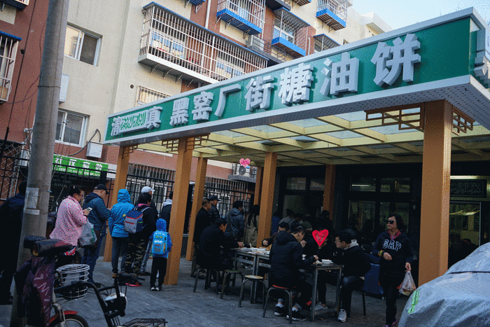 老磁器口豆汁店,挺多人的,里面有位置,找好位置然后排队买吃。