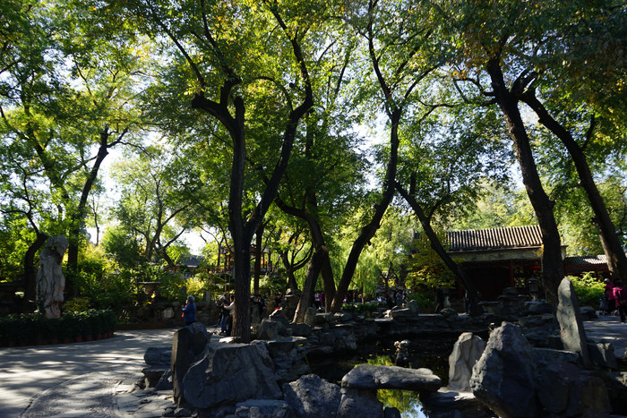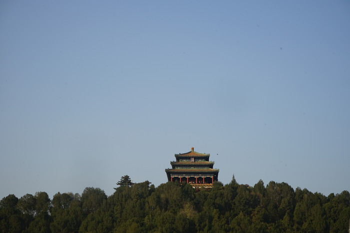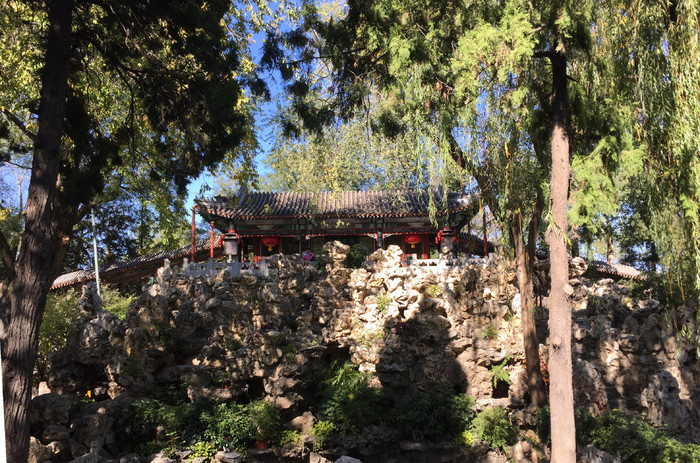 出故宫后走地下通道过对面景山公园买票进园,爬上最顶能拍紫禁城的全貌。隔壁是北海公园。