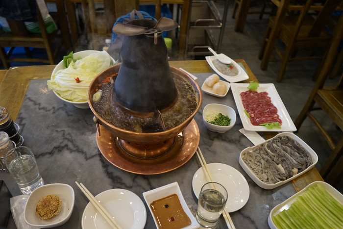 接欢欢到民宿梳洗一番后,我们就打的去附近的聚宝源吃北京火锅。因为晚餐我们订了6点的厉家菜,所以我们也是随便吃一点。因为不是吃饭时间所以不用排队。