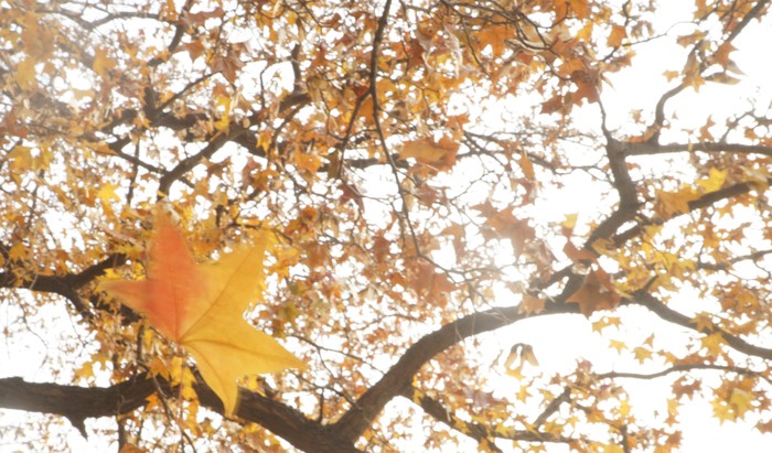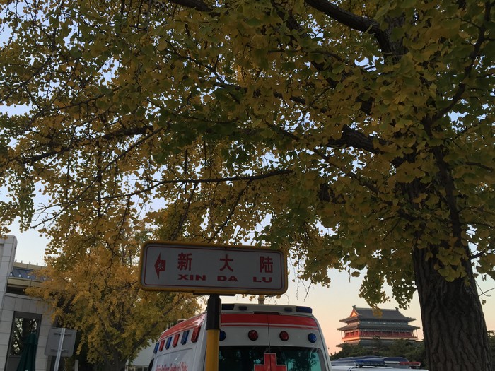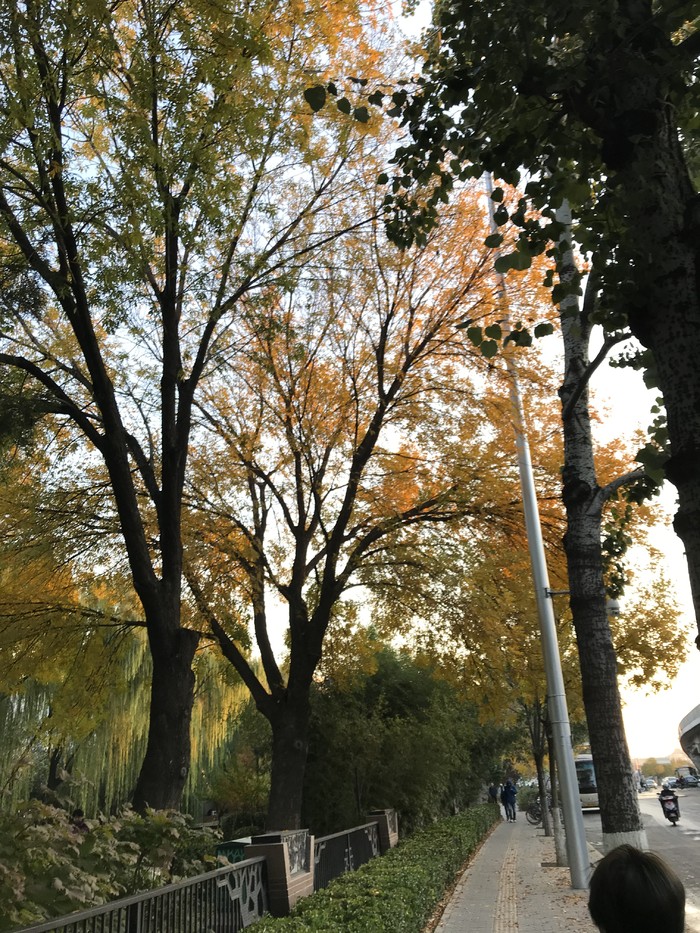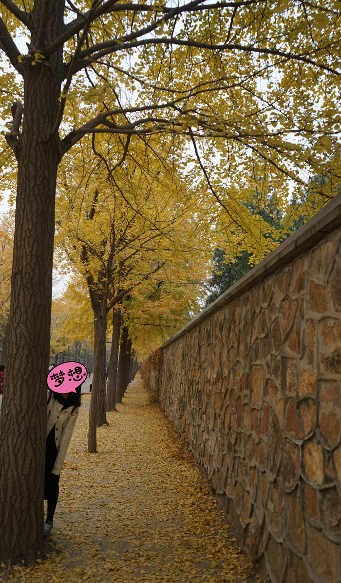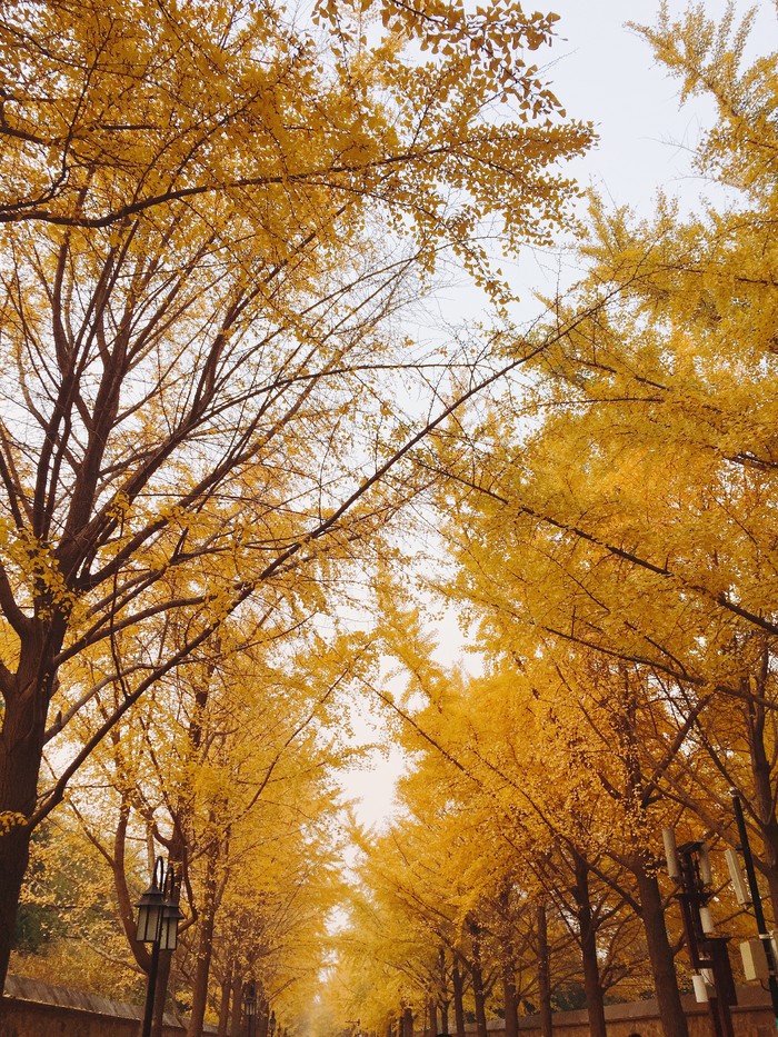 刚到北京的时候还没有雾霾,天空很蔚蓝,植物也是四季分明,随便在路上抬头一看都是金灿灿的黄叶,搭配着蔚蓝的天真的美得让人看呆,能确确实实地感受到广东消失已久的秋意。不过拿着行李箱不好拍照。