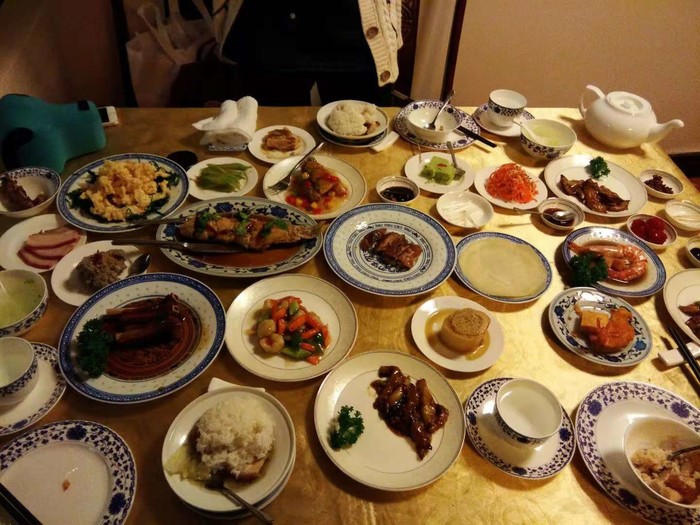 我们坐的对面那间包厢应该就是当时小梨坐的那间吧。没错,这就是三份290+的量,虽然菜色很多,也很够饱,但是说真的大部分都是一个味道就是油炸然后甜汁包裹着,其他我真的有种说不出的味道,用料也不怎么样,还有几道是用豆腐渣做成的。广东胃表示真的不好吃,真的欣赏不来,加上我们刚唰完火锅,我们每一种吃了几口就走了。走出来只觉得以前慈禧真的太惨了。