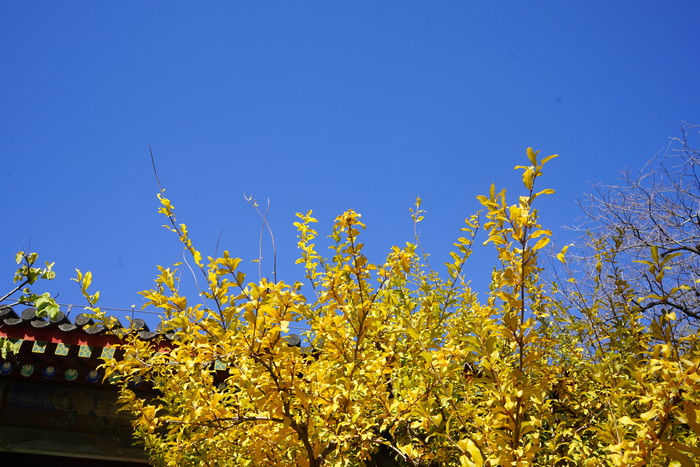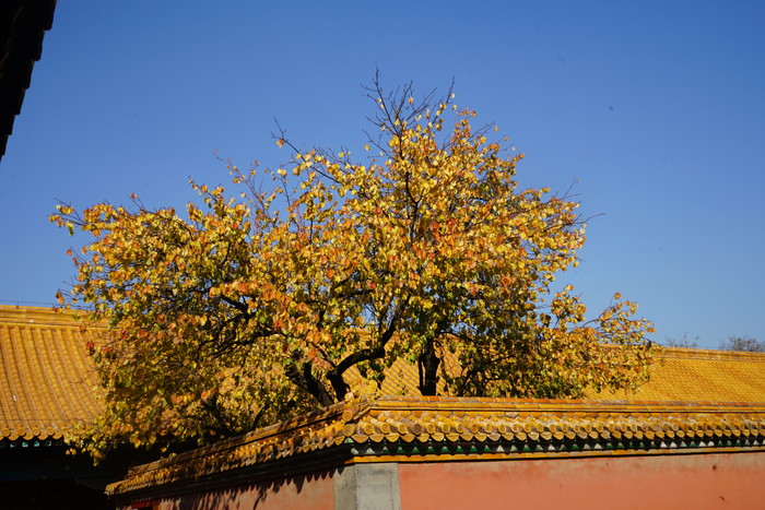 本来还想来北京看红叶的,不过北京的红叶能看的地方其实又少又远,就连香山也只有山上的一间寺庙里有。颐和园里只看到一颗半红半黄的枫树,估计是回温了,没有变红就直接枯掉了。手动P红。