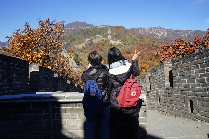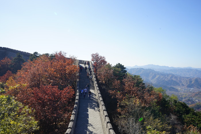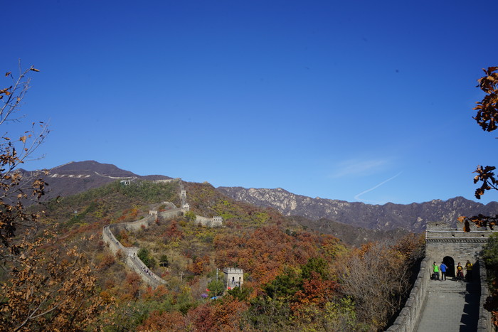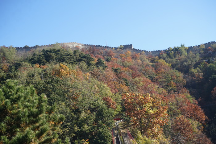 慕田峪之前奥巴马来过,所以比较多外国人,也相对没那么多人,植被覆盖度也比八达岭要好,我们这次本来还丧心病狂地打算八达岭和慕田峪都去,不过出发前看了别人的照片八达岭的植被都快掉光了,就决定第二天直奔慕田峪。
