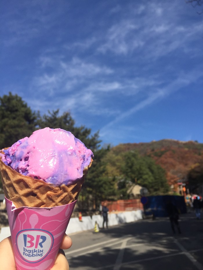 索道和缆车的门口有Subway和BR,滑道那里还有小卖部,在上摆渡车那里还有很多餐厅,所以不怕饿着,不过在长城上就建议大家要带点水和干粮,毕竟走几公里都没有小店。