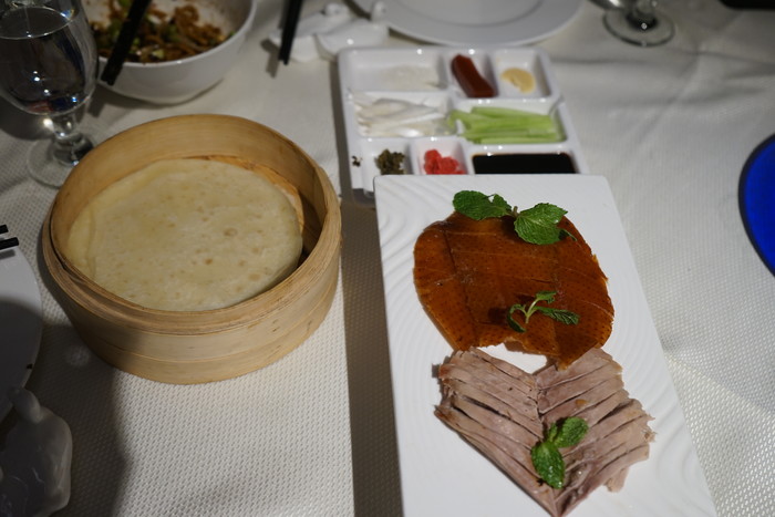 回到市区我们就打的去了四季民福烤鸭店故宫店,因为这里观景位可以看到故宫的东华门,我们到的时候还未到4点,建议大家错峰吃饭,北京比较出名的饭店都是出名要等好久的,像我们昨天吃的北京火锅,错峰基本不用排队,这次见这么早我们就铁了心要观景位,所以等了一个小时,虽然最后看到东华门,但是冬天天黑快,坐了没多久天色一暗玻璃一反光就基本看不到了,本来还想等菜上齐后再和东华门合照的。建议大家晚上就不用纠结观景位,而且分店也很多。