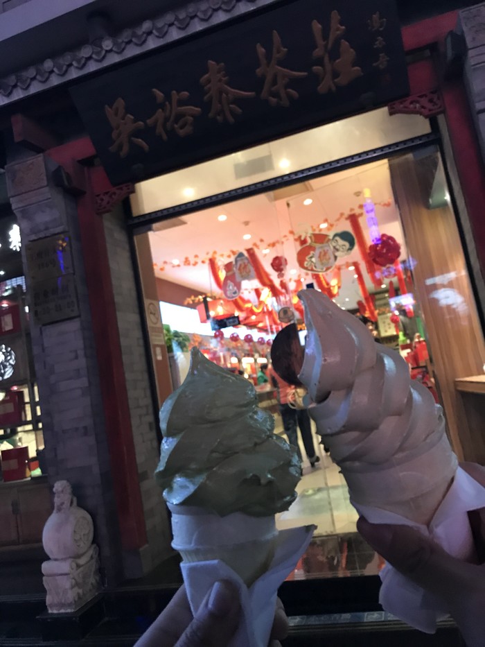 吃饱后导航走去王府井,大概走半小时左右,就是一般的商业广场步行街,买了吴裕泰的抹茶、绿茶冰淇淋和北京瓷瓶酸奶,吴裕泰其实是茶叶店顺便卖茶味雪糕,真的很重茶味的雪糕,挺好吃的。北京瓷瓶酸奶挺好喝的,瓷瓶记得喝完要还给店家,也可以加钱拿走。