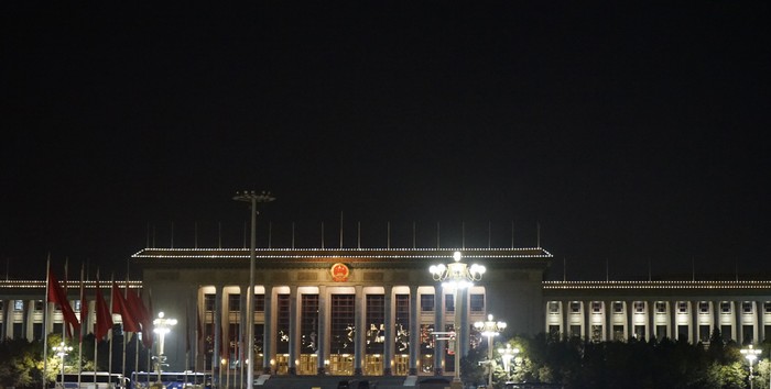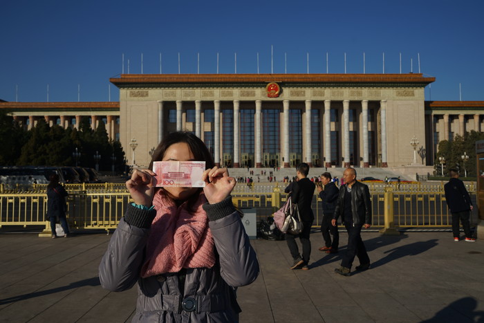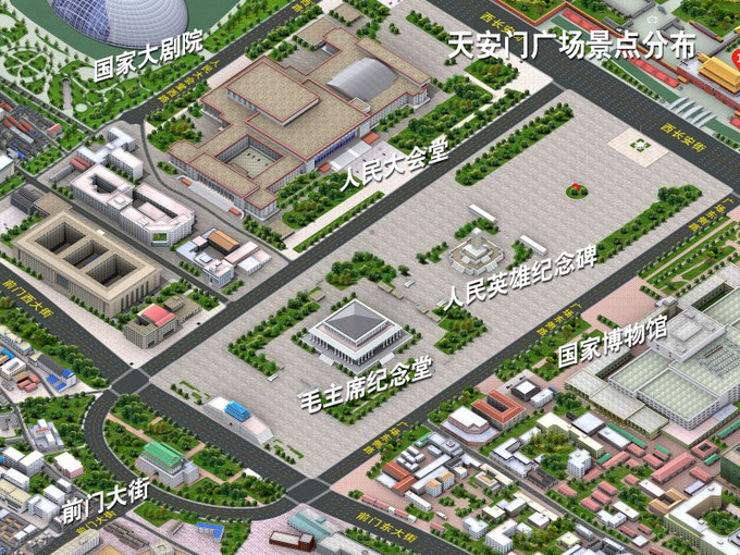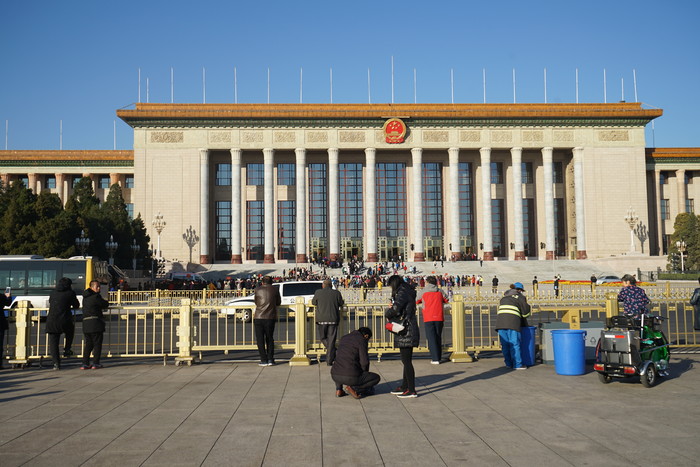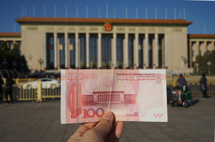 然后绕回前面准备好100元人民币拍人民大会堂、国家博物馆和天安门。