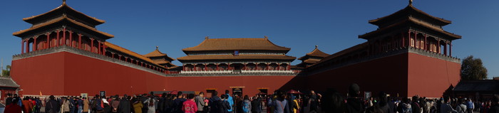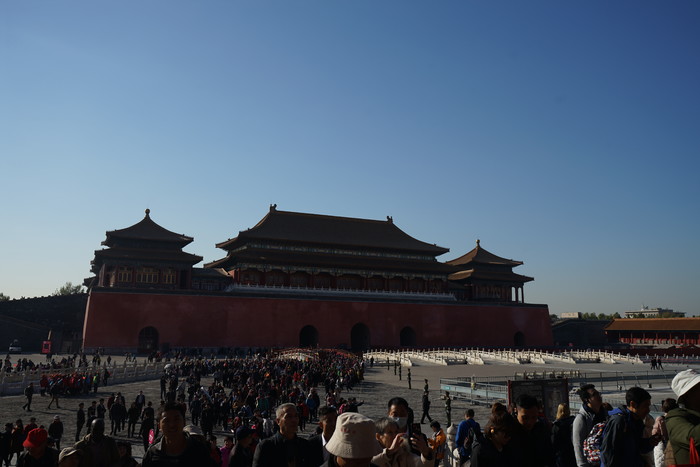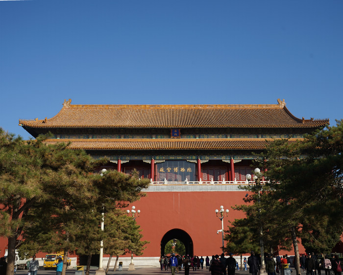 我们来的这天天安门正在维修,不能上二楼。走天安门右边门,穿过端门来到午门,之前已经在官网买了门票的直接刷身份证就可以进故宫了。