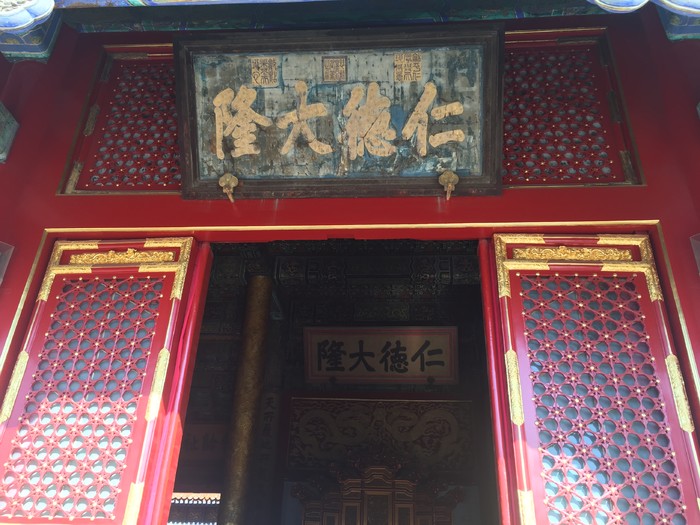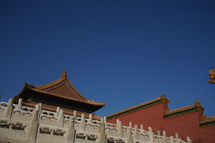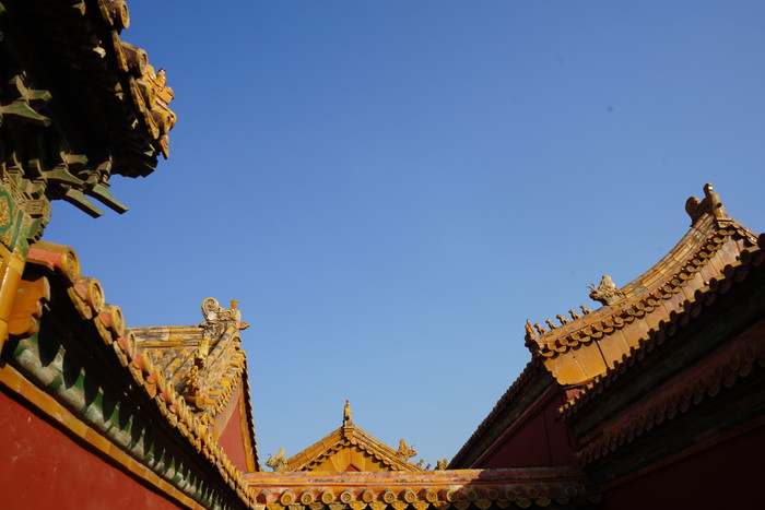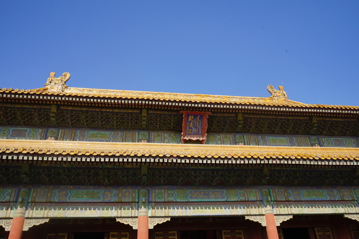 众所周知故宫的文物很多都被搬到台北故宫博物馆了,现在北京的故宫博物馆的珍宝肯定不能和台北故宫博物馆的相比,所以建议大家还是买票去珍宝馆和钟表馆看看。但是北京故宫这整个紫禁城就是一座巨大的文物建筑,这些红墙金瓦就足够你看上一整天了。故宫前面已经修复很多了,往后走还能看到牌匾被风化到掉色的原有模样,里面还保留了慈禧故居,不够高没拍好就不放图了。