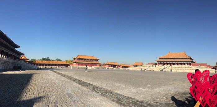 9月的时候左边和中轴线到保和殿实施维修封闭到2020年,虽然封了快一半的故宫,但是我们走马观花都走了6个小时,而且紫禁城里的路真的不好走,一天走下来真不是一般的累,里面有吃饭的地方,也有小卖部卖故宫周边。