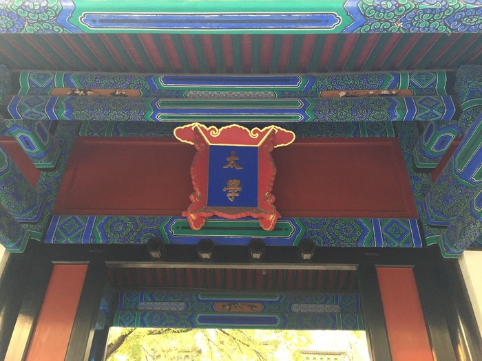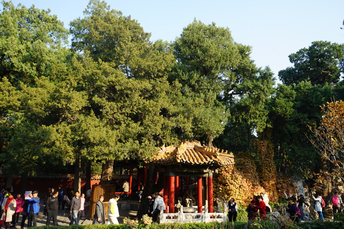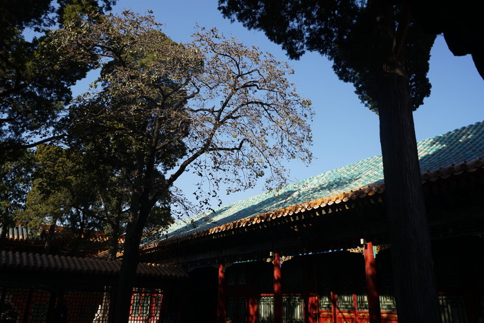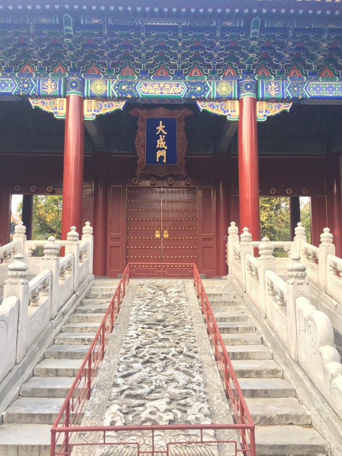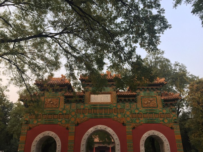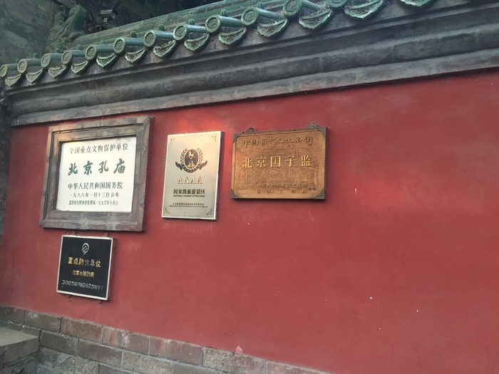 看完雍和宫附近就是孔庙和国子监,出门口会看到有指示牌照着走就可以了。孔庙和国子监是连在一起的两个院子,其实没什么看,挺贵的联票30块,学生有半价。我实在走不动了,龙龙就说国子监是以前的学府之类的。