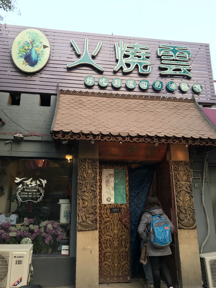 拍完后打的去附近的火烧云傣家菜馆直接吃晚饭,4点半左右刚好开晚市不用排队,这间虽然偏辣但真的很推荐,很好吃,正当我们激动终于吃到好吃的北京菜时,搜了一下发觉原来是云南菜。