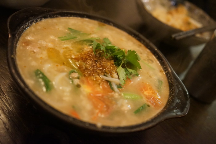 看着旁边的人吃得这么香,我不禁怀疑是不是我们吃的方法不对。试了学其他人加入小菜和酱料也是无补于事,就是酸了点而已。算了算了,我们吃了两口就放弃了。
