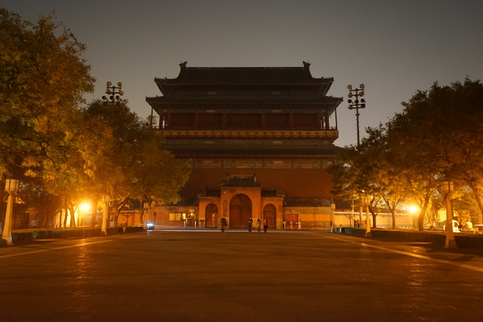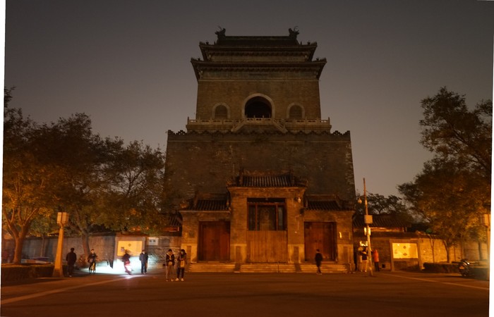 因为火烧云附近就是鼓楼和钟楼,吃饱后就步行过去打打卡。晚上鼓楼和钟楼都没有灯光打在建筑上,也是要用相机才能拍。