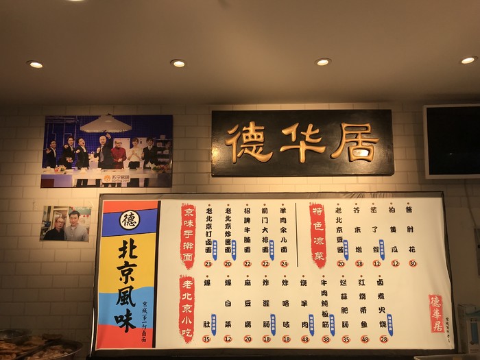 老北京德华居小吃店在美食街最里面的一个美食广场里面,上过电视好像很厉害,老板很热情还力推打卤面所以我们每人都点了,其实挺大一份的。