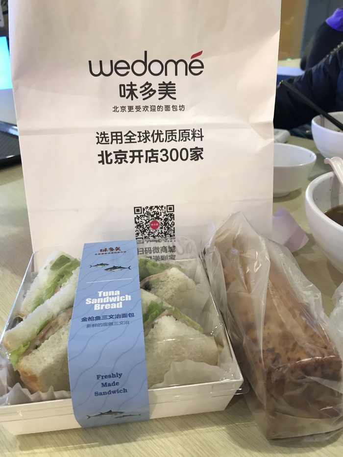 因为晚上还要去奥林匹克中心担心会饿,路过味多美蛋糕店就买了两个,一般吧,相比之下原麦山丘比较好吃。