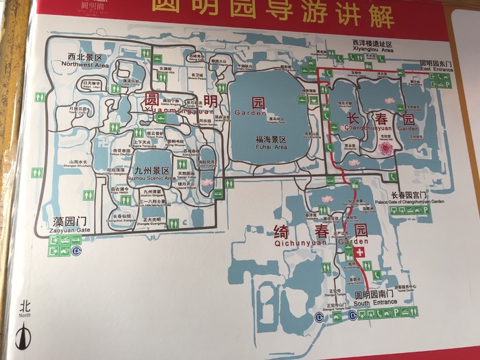 在门口直接用微信畅游公园直接买电子票进园就可以,后面几个公园都是用这个公众号买门票。建议买套票,会比较多东西可以看,赶时间或者不确定也可以去到才买。圆明园和颐和园门口都有卖手画地图。