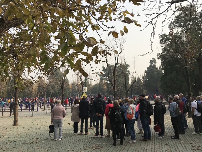 天坛公园真的挺公园的,除了观光区外很多人在运动,还走错路看到松鼠和看到外国团在介绍中国式晨运。