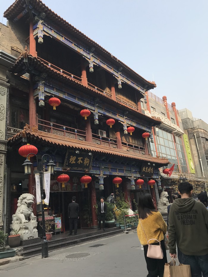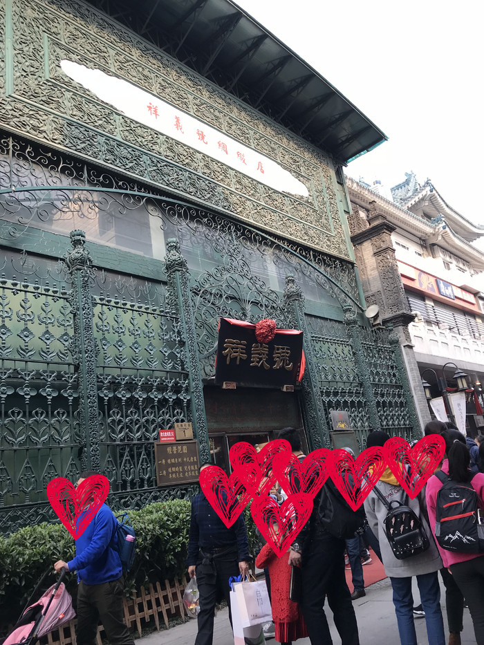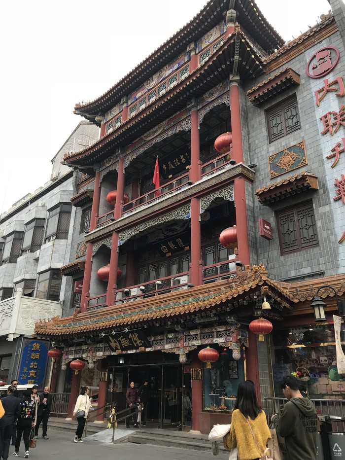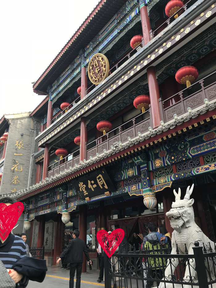 看还有时间然后坐车往前门大街大栅栏走,原本就以为是个普通的步行街只有一个大栅栏可以拍拍照,不过我想错了,步行街确实是步行街,但是周边的建筑都好浮夸好有特色,真的很推荐大家去看看。而且那里终于看到有三禾标志的三禾稻香村。