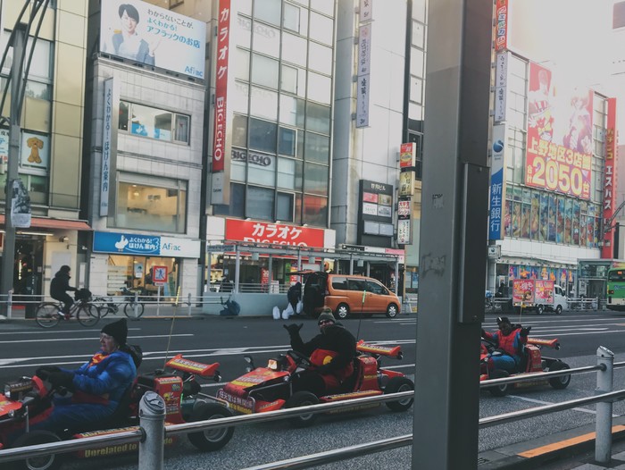 一出京成上野站就看到特别可爱的马里奥车队,必须要有国际驾照才可以开。