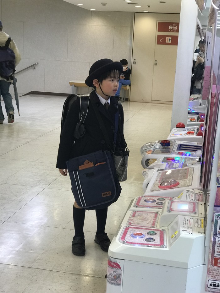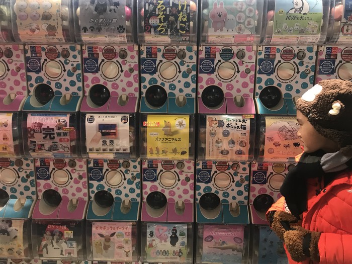 高岛屋抽扭蛋的时候机器故障了,是个老爷爷当班,捣鼓了半天还是不行,特别豪气拉开扭蛋机让Tony哥随便挑一个,Tony哥也识货,挑了个非常有纪念意义的横滨中华街。