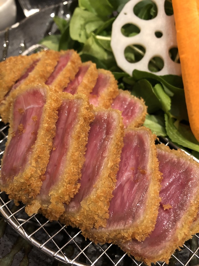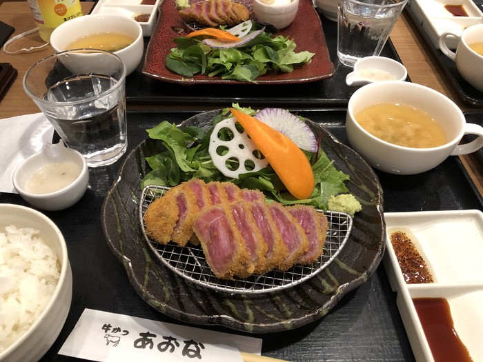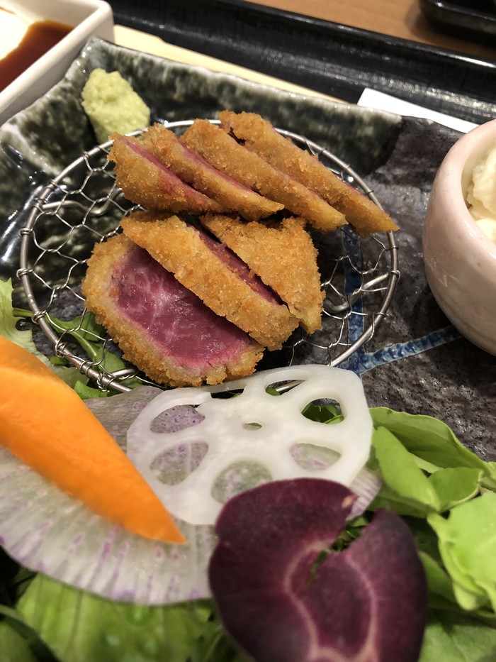 午饭是老公特别想吃的炸牛排,这家只有四款套餐,我们选的是A5的霜降牛肉,入住虹夕诺雅前的一餐,非常有仪式感,把整个旅游的期待程度又拔高了,给老公起立鼓掌。