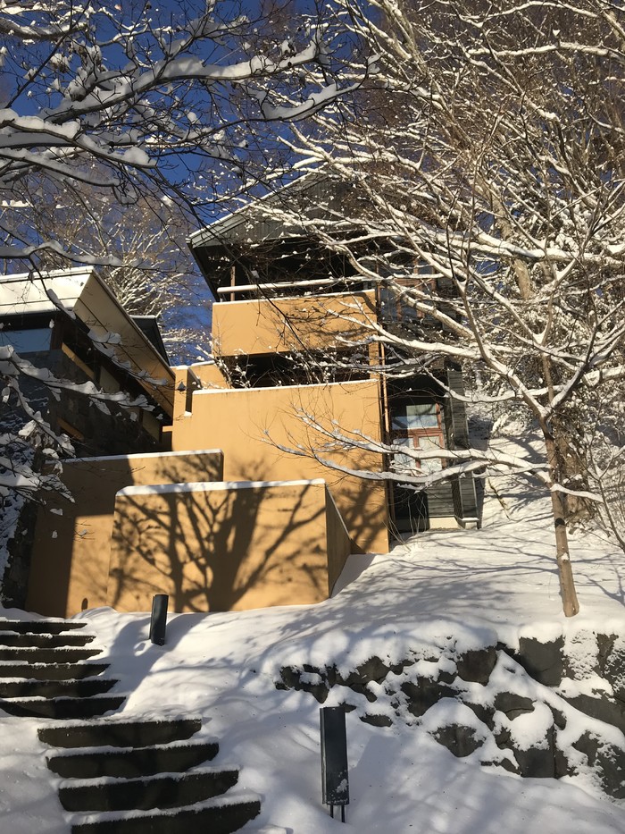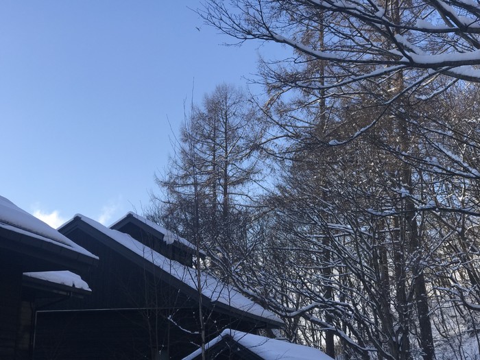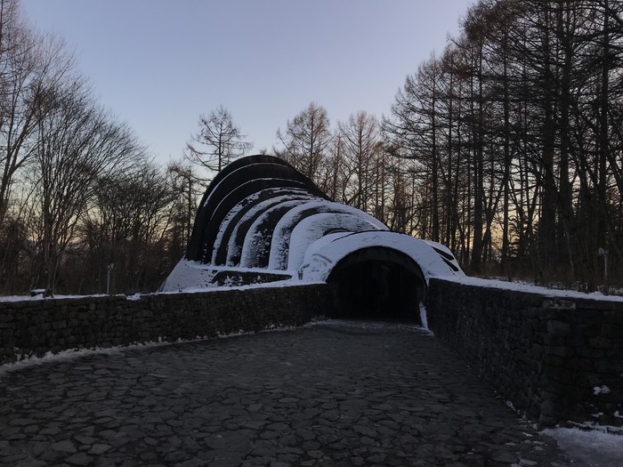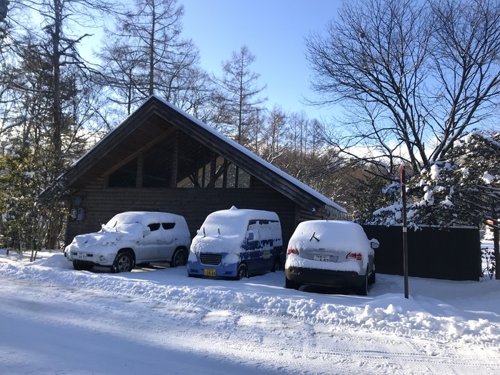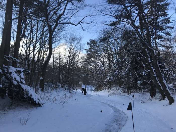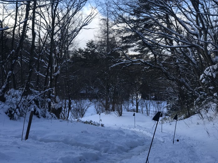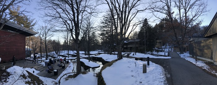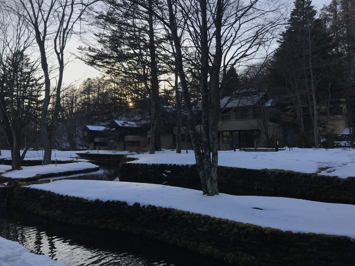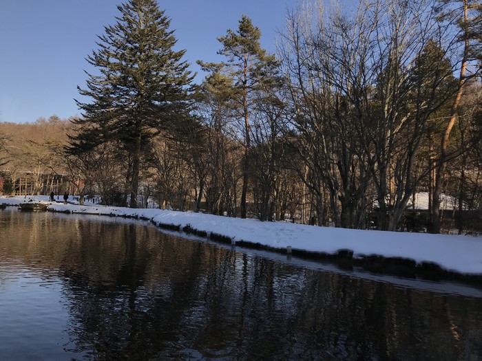 今天的轻井泽是晴天,路边只有一点点积雪。上一次来轻井泽是夏天的时候,十分凉爽。冬天的轻井泽倒也没有想象中那么冷,反而在横滨被冻成狗,这是后话。