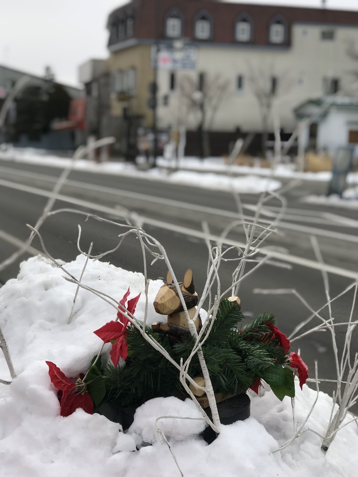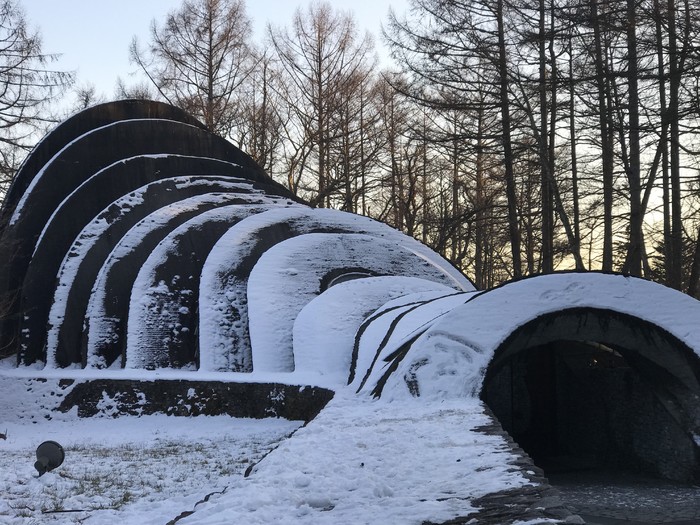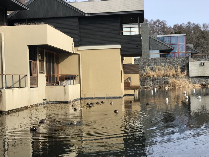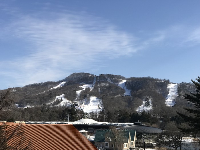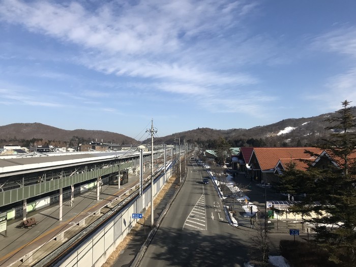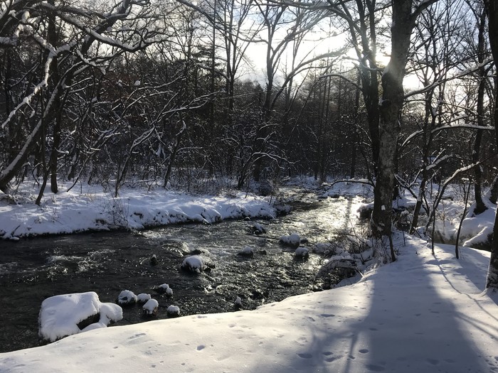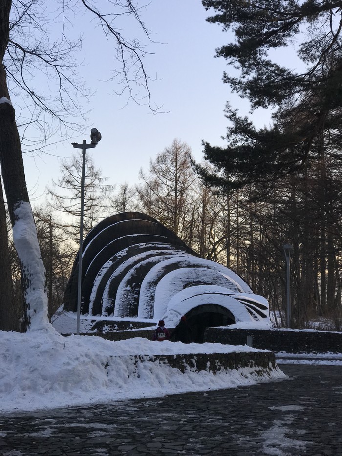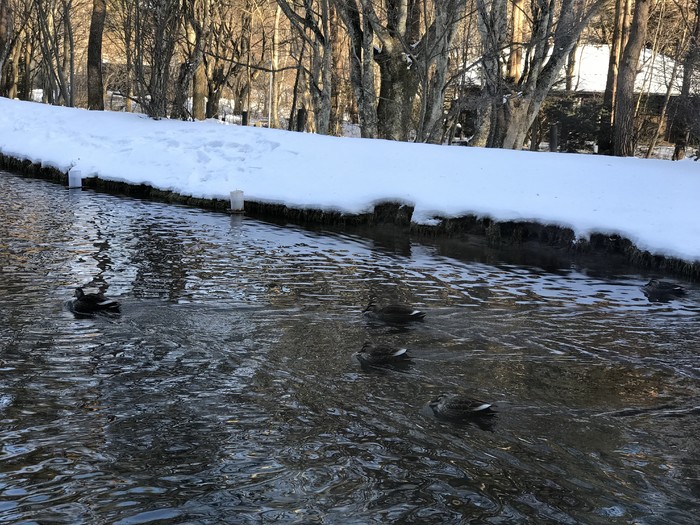 今天的轻井泽是晴天,路边只有一点点积雪。上一次来轻井泽是夏天的时候,十分凉爽。冬天的轻井泽倒也没有想象中那么冷,反而在横滨被冻成狗,这是后话。
