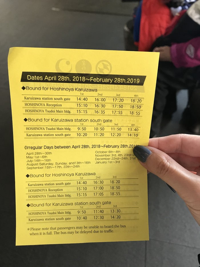 出了轻井泽站往南口走,下了电梯就是虹夕诺雅的链接车。白色的是接送已入住的客人,黑色的是接送当天check in/check out的客人。checkin的朋友请认准黑色虹夕诺雅链接车。
