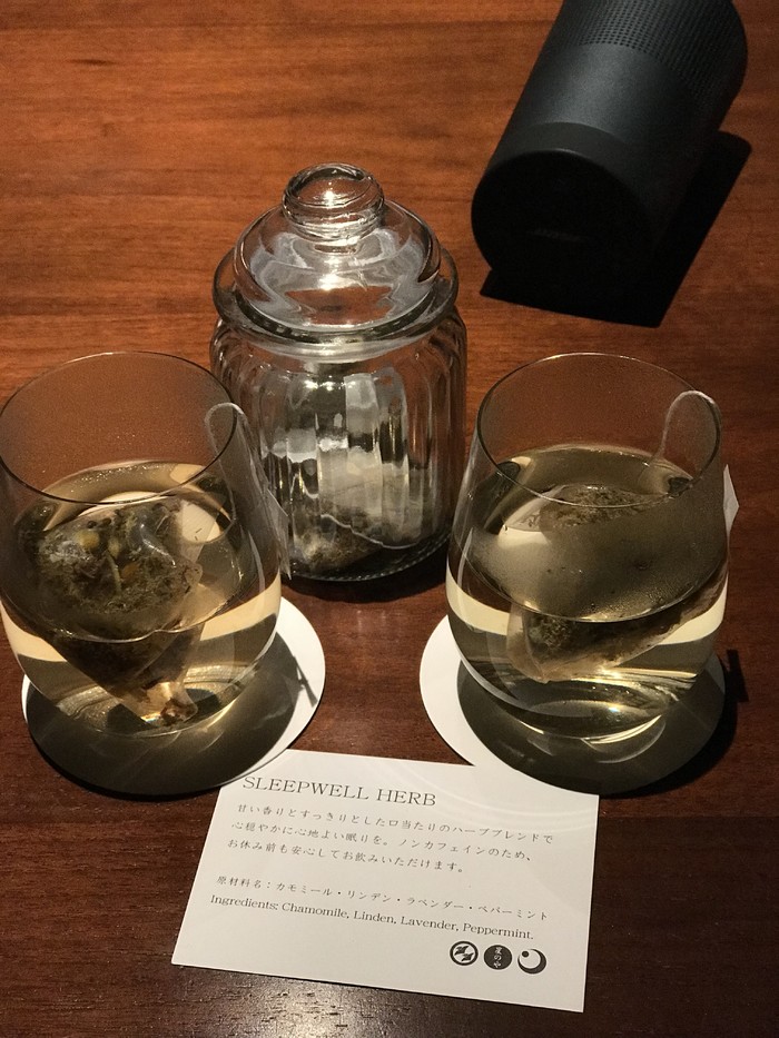 回到房间,发现桌上多了一瓶安神茶,混合了薰衣草、薄荷等植物,清香四溢。