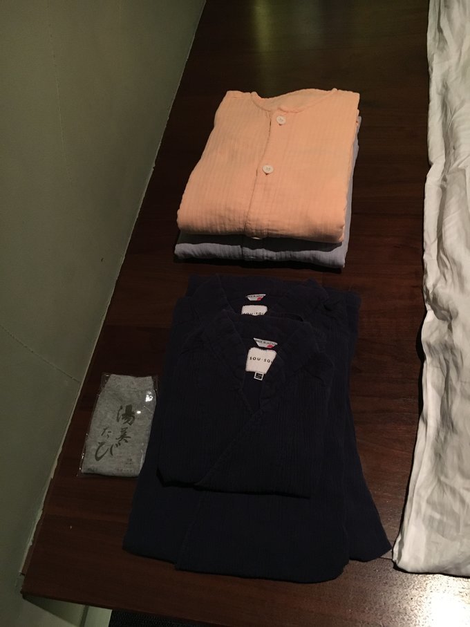 虹夕诺雅提供了睡衣,浴衣以及外出服,还有木屐和袜子。穿上外出服到处晃晃拍拍。