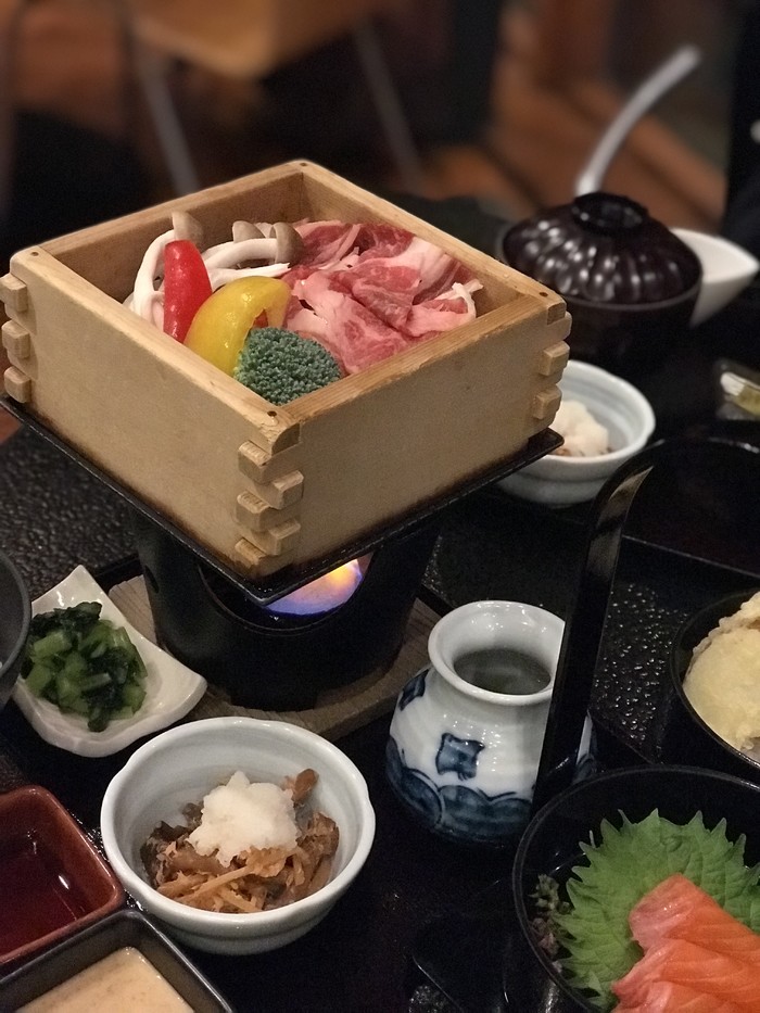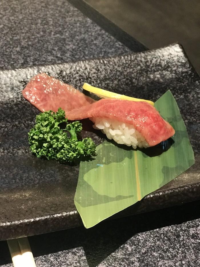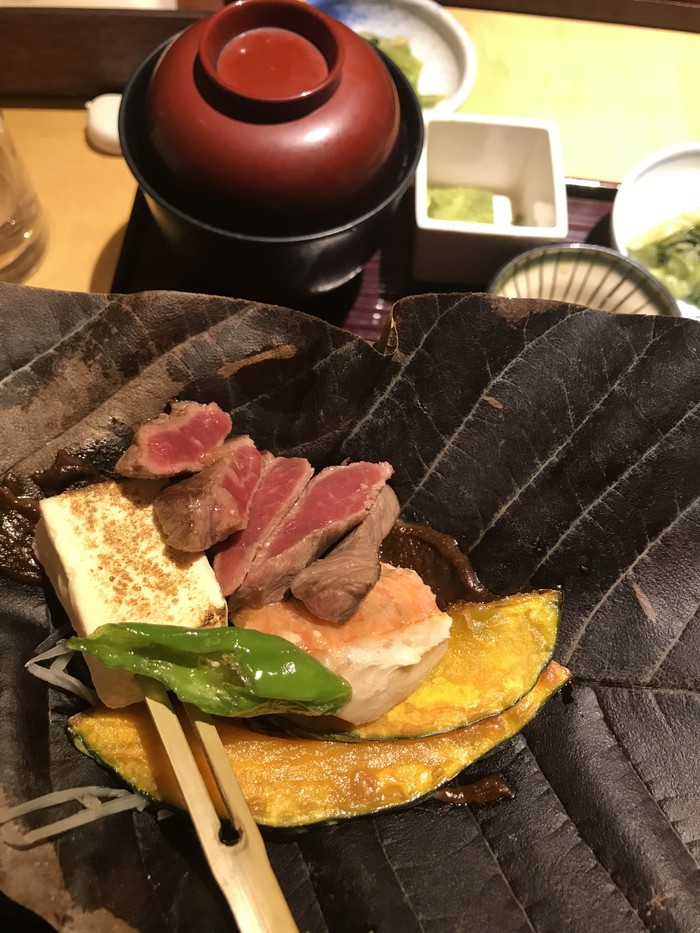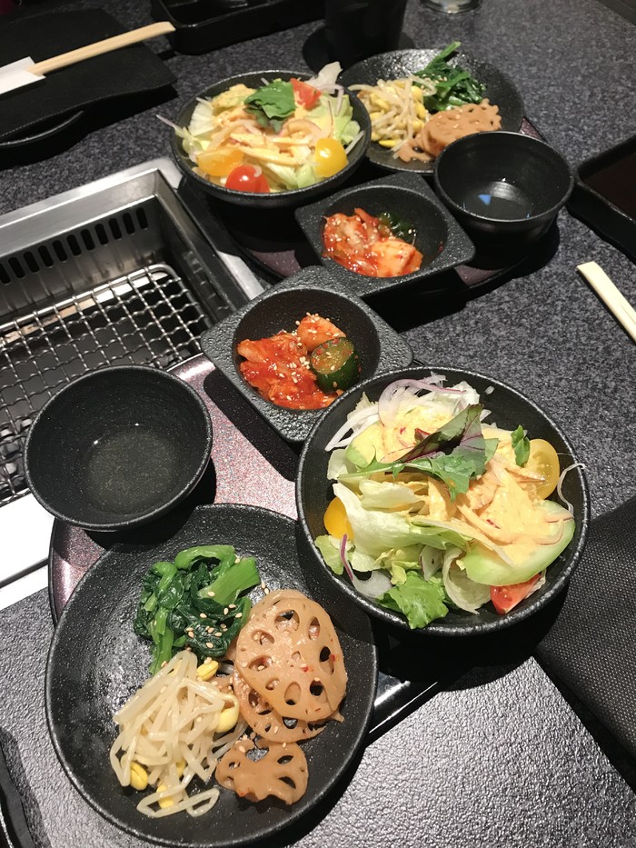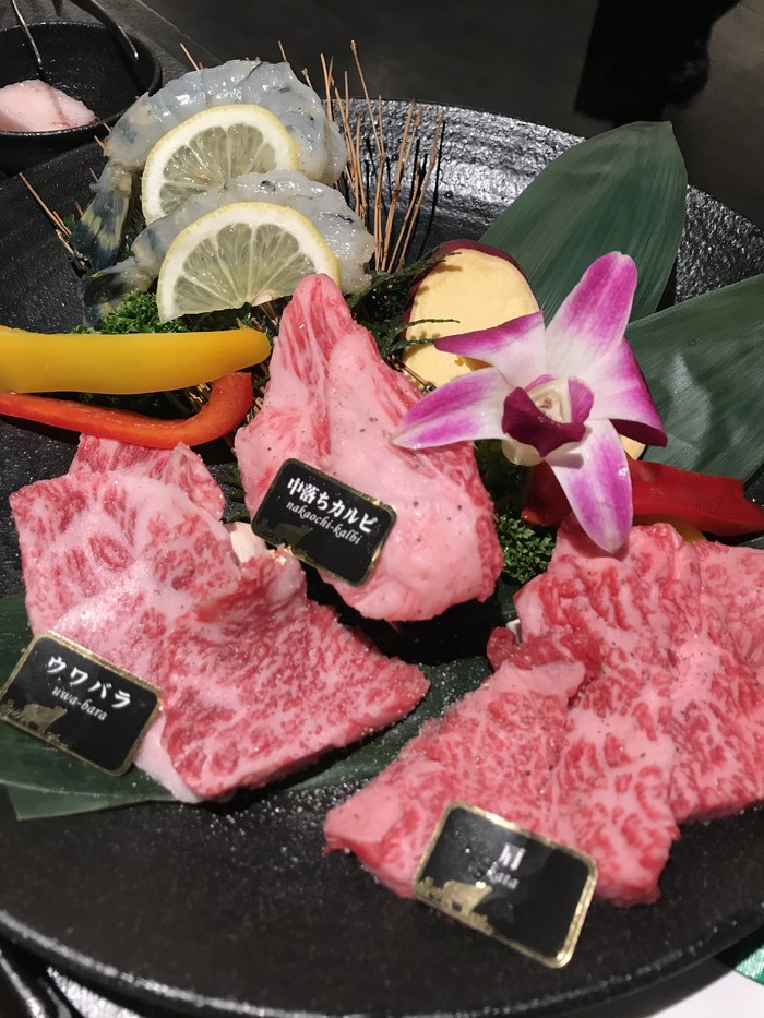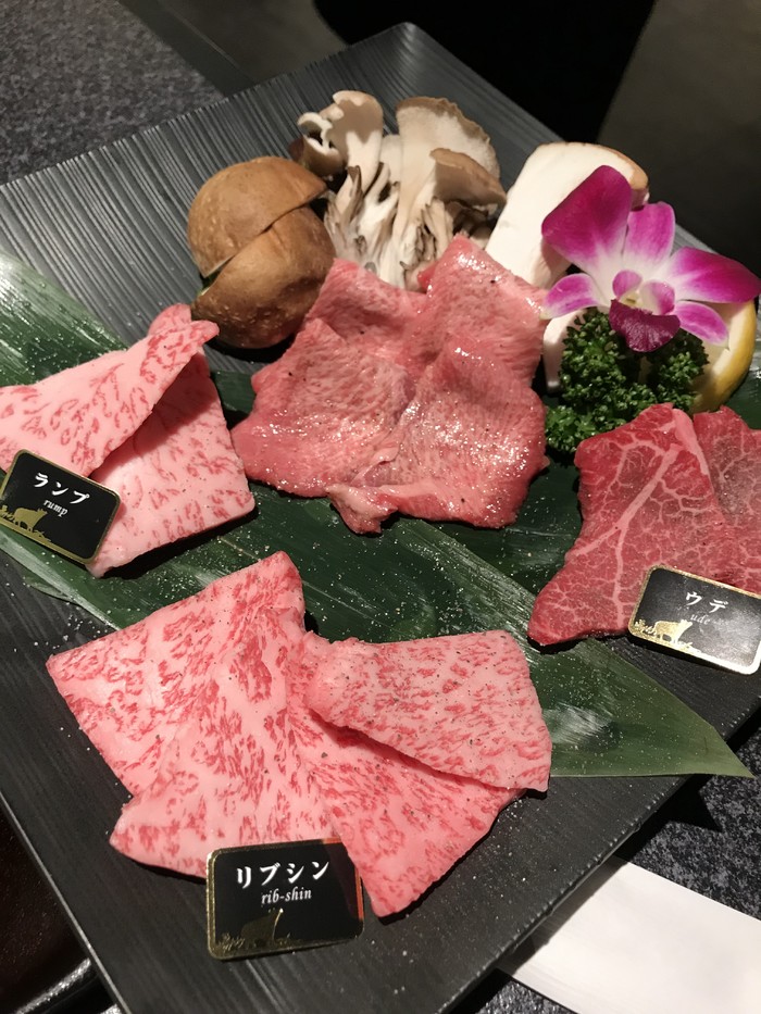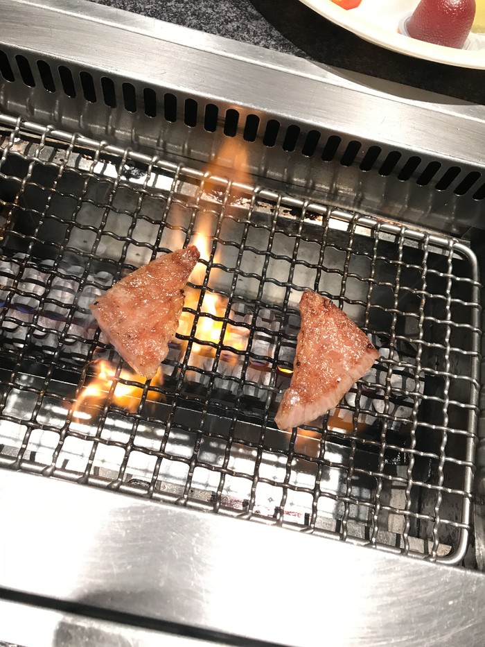 年夜饭要隆重一些,小田急的牛兵卫。我们点了套餐,精选牛的六个部位,肉质很漂亮,之前在国内吃烤肉的时候向店员讨教了烤肉的方法,现在派上用场了。