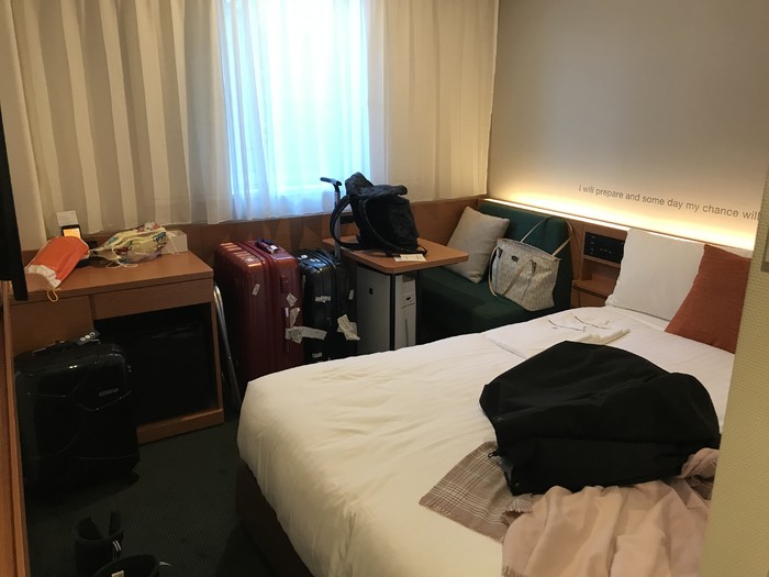去年中转去长野前住了一晚,今年中转的一晚依然选择了它。房间比较小,只能平摊一个箱子(对游客来说房间大小是按照能同时平摊的箱子数来算的23333)。优点是非常优异的地理位置,一分钟走到JR上野站,三分钟走到京成上野站、上野公园和阿美横街。被日本地铁坑过的人都知道,很多地铁站是没有扶梯和电梯的,扛着箱子上上下下想死的心都有。所以我选酒店的第一个标准是,最近的地铁出口要有电梯或者扶梯。