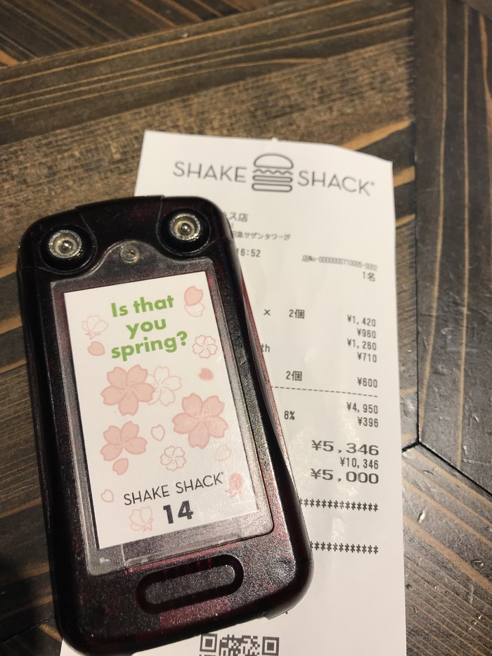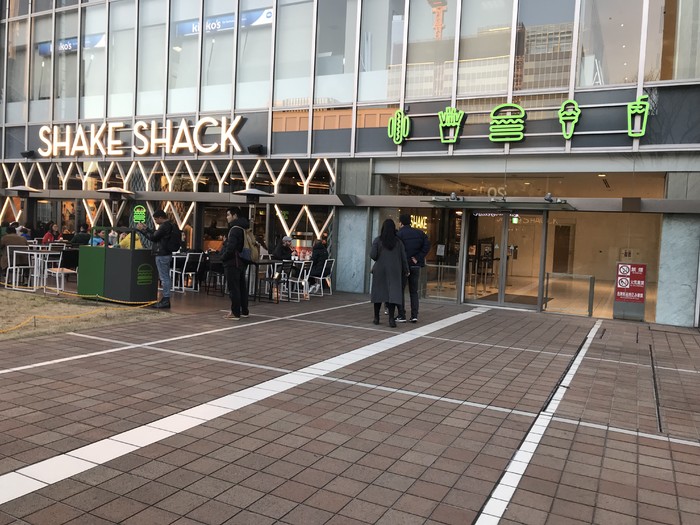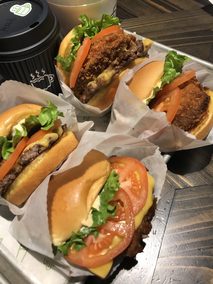 过了高岛屋继续往天桥走,就到了网红汉堡店shake shack。上海新开的店要排三个小时,新宿这家有室内和室外的座位,基本不需要等。