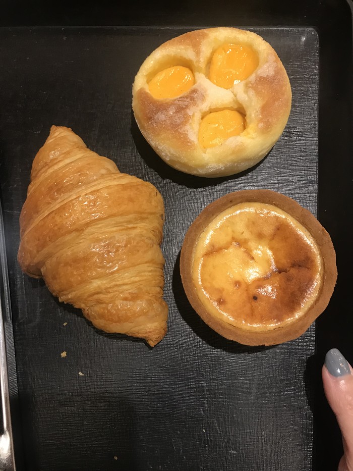 把店里的人气前三都买了,确实是我吃过最好吃的牛角包,表皮非常酥脆,但是一口咬下去里面是松软的。