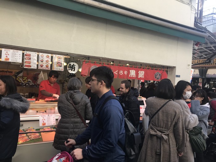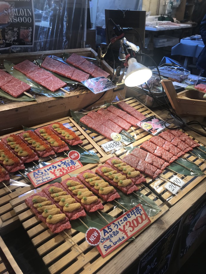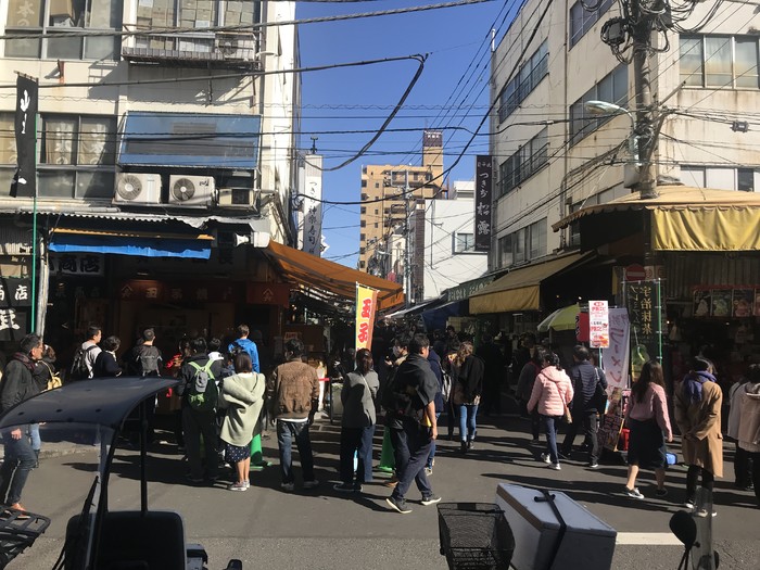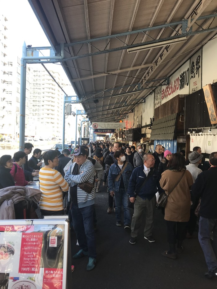 为了给2020东京奥运会腾地儿,筑地场内市场已经搬走了,这边只剩下场外市场,不过还是有相当多的游客慕名而来,比如我。场外市场更像是大型的菜市场,还是挺有得逛的,逛吃逛吃。