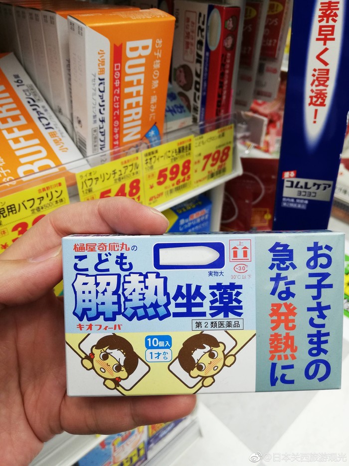 拿了小林退热贴,跟医师说小孩发烧到39度,他们都吓到了。给了个"解热坐药",医师羞涩地跟我说就是塞屁股的。中国小孩哪用过这种药啊,我问有没有其他口服的药,这个恐怕很不舒服。医师说这个是最有效的,好吧,再信你们日本人一回。