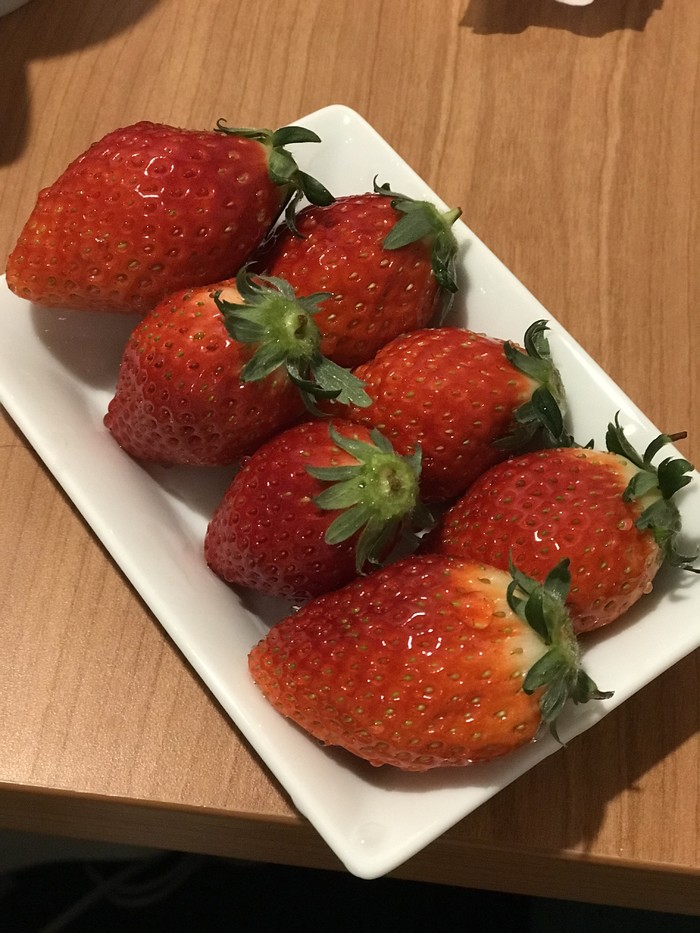 买了一盒淡雪白草莓,老板说可以直接吃不用洗。老板没骗我,吃了没洗过的草莓一点事都没有。