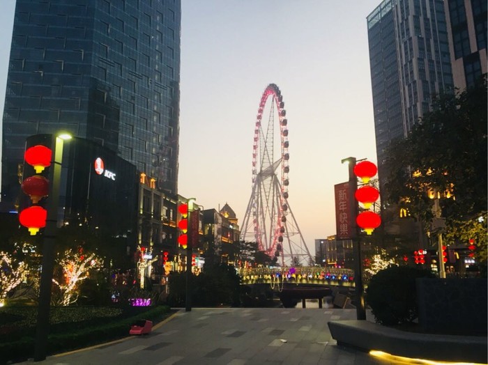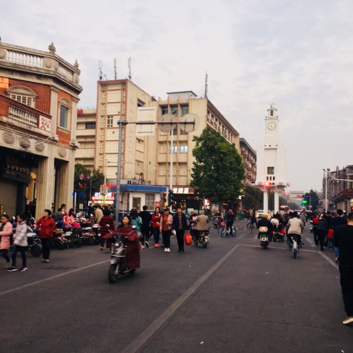 由于过节商店都关门,路上不见人影。只有以钟楼为中心的东街西街中山路很是热闹,吃喝玩乐人潮涌动所有店铺都营业。