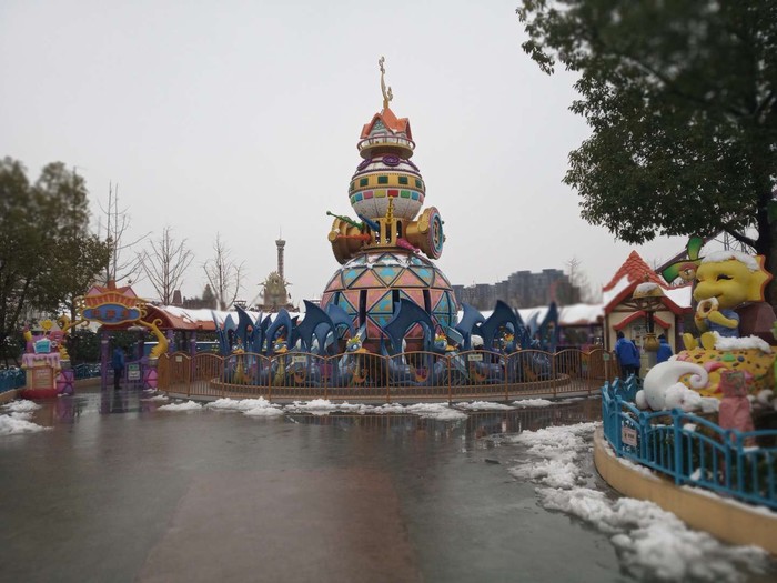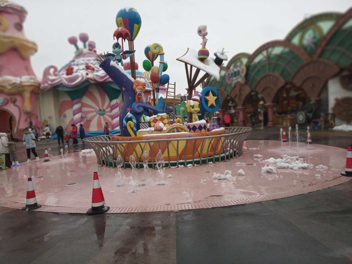 进门左手边有游览路线图, 可以按照顺序来玩,冬天水世界是不开的,因为下雪,所以有部分项目没有开,我们是从左手边的项目开始玩,先玩了库克苏克主题,玩了迷幻魔窟,翼飞冲天,水火动力等,排队的人还是挺多的,其他的一些亲子项目,因为没有带孩子没有玩。