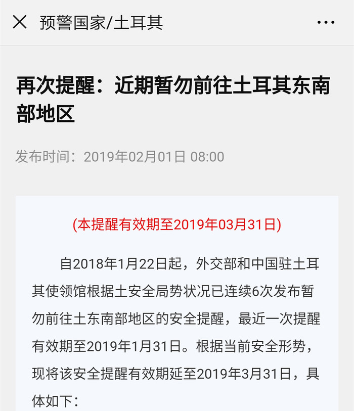 除了加拿大、印度尼西亚外,土耳其也是不少人出境游旅行地备选之一。自2018年开始,外交部已连续6次发布安全提醒:暂勿前往土耳其东南部地区。因为这里与叙利亚接壤,之前打仗打得一塌糊涂。