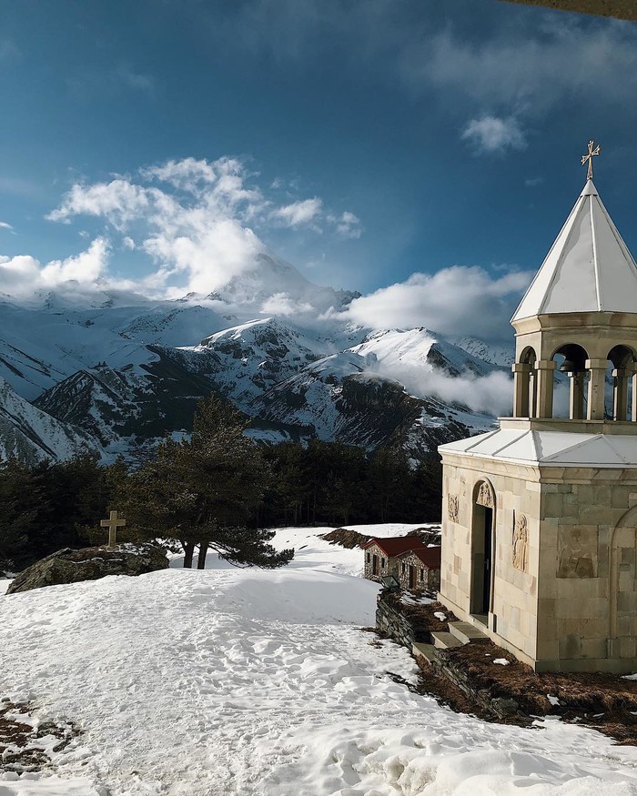 位于格鲁吉亚北部,是高加索地区非常著名的高山之一,这里每年都会吸引很多登山及滑雪爱好者。一般登山的游客都是从斯特潘茨明达镇(Stepantsminda)出发,这里有完善的旅游设施。